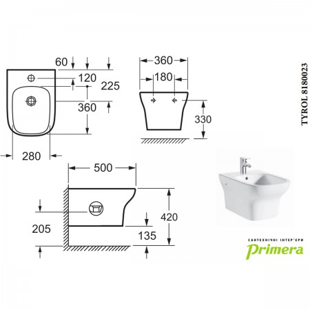 8320023 TYROL Унітаз підвісний Clean Pro без кришки (1 сорт)