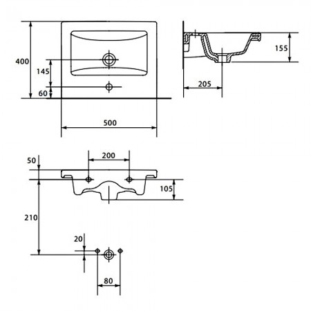 K32-013 COMO Умивальник меблевий 80 з отвором для змішувача, з переливом, білий глянець (картон) (1