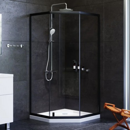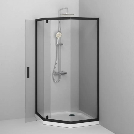 W90UG-405-090BT Душ. кабіна Gem 5-corner Pivot 90x90 скло прозоре, профіль чорний мат, без піддону (