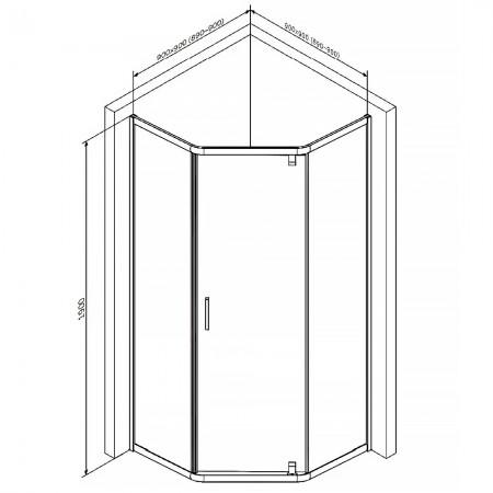 W90UG-405-090MT Душ. кабіна Gem 5-corner Pivot 90x90 скло прозоре,хром, без піддону (1 сорт)