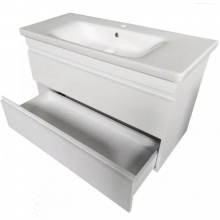 753100W FRAME Біла глянцева тумба 100см з раковиною та сифоном (1 сорт)