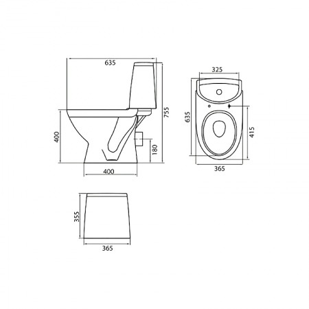 L89206200 Runa Унітаз-компакт підлоговий, вертикальний випуск, бачок 3/6л, нижній підвід води, сидін