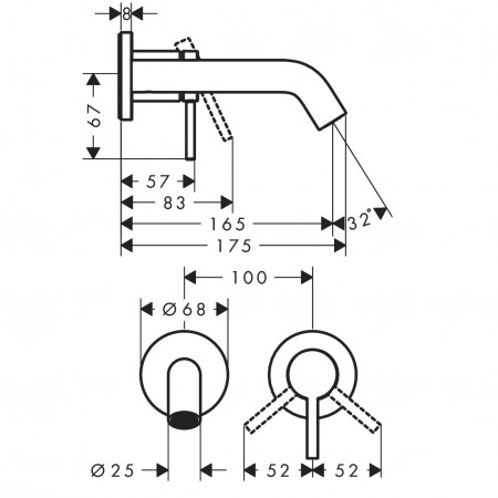 73350000 HG Tecturis S Зовнішня частина змішувача для раковини зі стіни EcoSmart 16,5 cm, хром (1 со