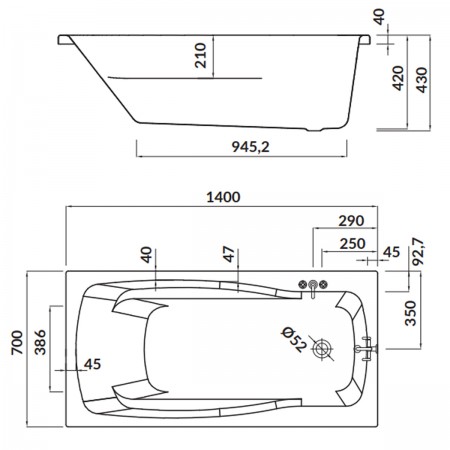 S301-160 LANA Ванна прямокутна 140х70 см + S906-001 (1 сорт)