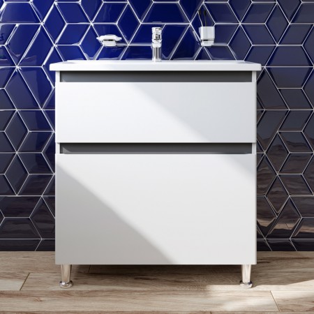 M85-FSX0802-WC0802WG38 X-Joy, База з раковиною, на підлогу, 80 см, 2 ящика, білий глянець (1 сорт)