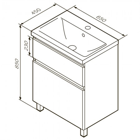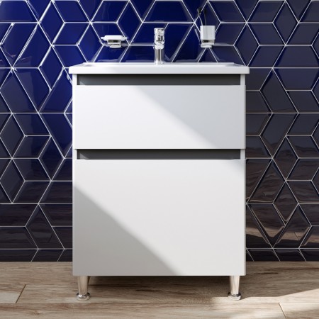 M85-FSX0652-WC0652WG38 X-Joy, База з раковиною, на підлогу, 65 см, 2 ящика, білий глянець (1 сорт)