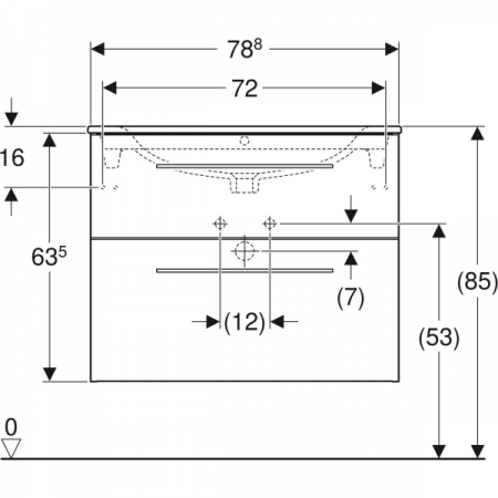 500.995.00.1 Вбудовуваний умивальник Geberit Selnova Square 80см, отвір для змішувача в центрі, пере