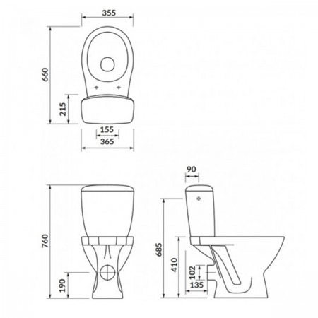 K681-009 Компакт 817 MILOS KA010 3/6л з кришкою поліпропілен, гор.випуск, боковий підвід води (1 сор