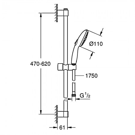 26406003 Tempesta 110 душовий набір, 2 режими, хром (1 сорт)