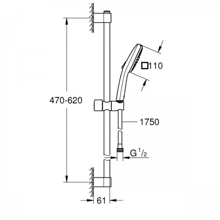 26164003 Tempesta 110 душовий набір, 2 режими, хром (1 сорт)