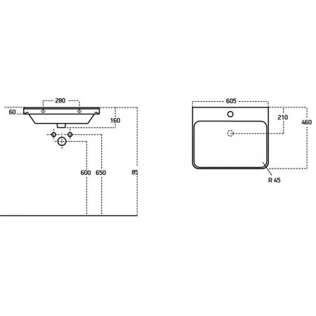454060W Urbanis Тумба 60 см з раковиною та чорними ручками, біла (1 сорт)