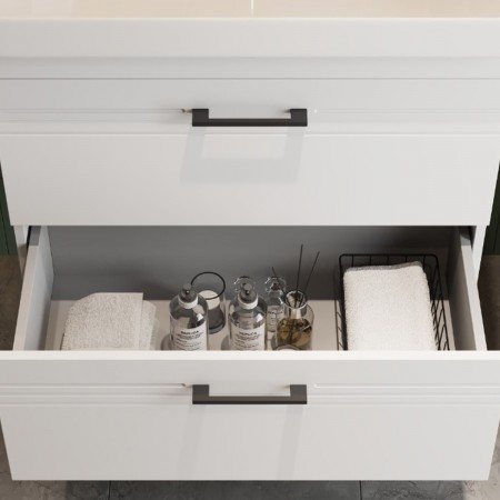 454080W Urbanis Тумба 80 см з раковиною та чорними ручками, біла (1 сорт)