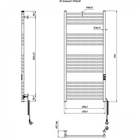 6.1.0304.06.BM Рушникосушка ел. HF Greenwich 1170х530 чорний мат, в комплекті з прих.підкл (1 сорт)
