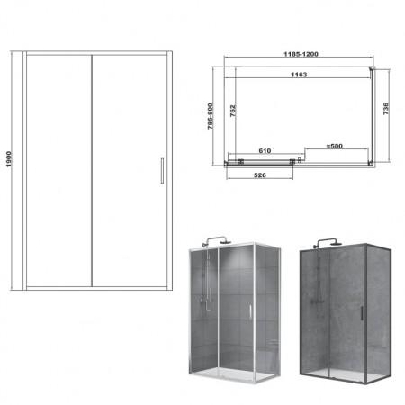 FEN2340B ART 2.0 Кабіна душова, прямокутна, розсувна, чорний матовий, 1200*800, без піддона, скло пр