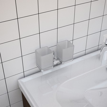 8128 Склянка для зубних щіток подвійна GLORIA, скло, хром (1 сорт)