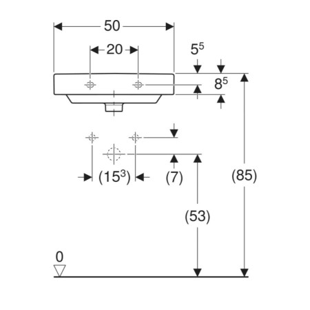 500.256.01.1 Smyle Square Раковина 50см, з 1 отв. під зміш., з переливом, колір білий глянець (1 сор