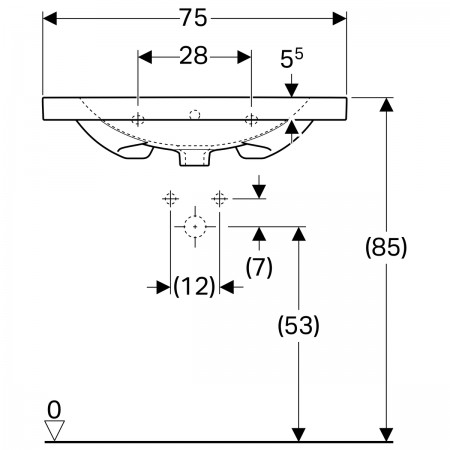 500.622.01.2 Geberit Acanto Умивальник 75см, з отвором, з переливом, білий (1 сорт)