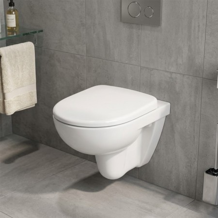 501.751.00.1 Selnova Комплект підвісного унітазу воронкоподібний, 53см, овальний, Rimfree, з сидіння