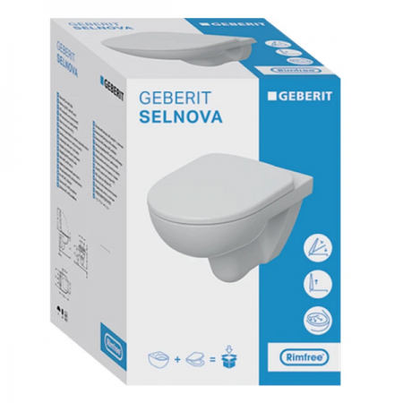 501.961.00.1 Selnova Square Комплект підвісного унітазу воронкоподібний, 53см, прямокутний, Rimfree,