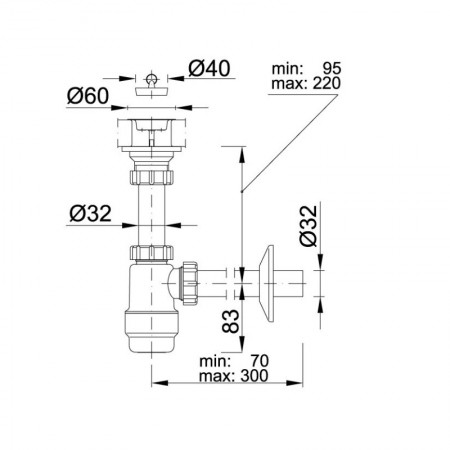 STY-533 сифон для раковини 5/4”, із водозливом, патрубок відведення 32 мм (1 сорт)