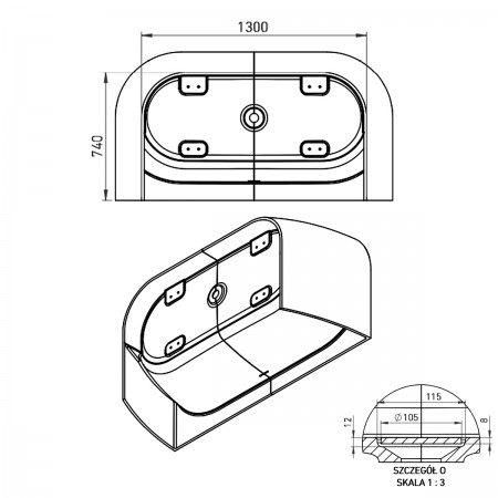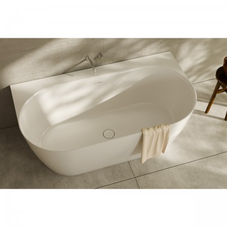 160.086.043.1-3.0.3.X.X Ванна Scorpius Lite пристінна, з переливом та сифоном, біла, штучний камінь,