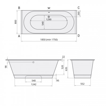 VAVARXL/00 Vario XL Ванна прямокутна із литого каменю 1850х800, колір білий глянець (1 сорт)