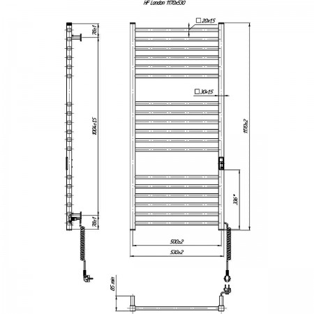 6.1.0102.06.WM Рушникосушка ел. HF London 770х530 білий мат, в комплекті з прих.підкл (1 сорт)