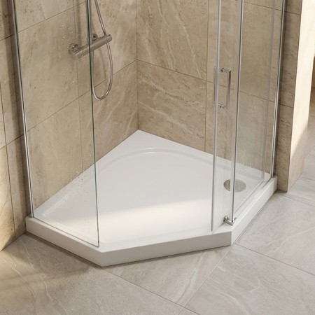CRAFT Душовий піддон з литого (штучного) каменю, 5-ти кутний, з панеллю, білий глянець (1 сорт)