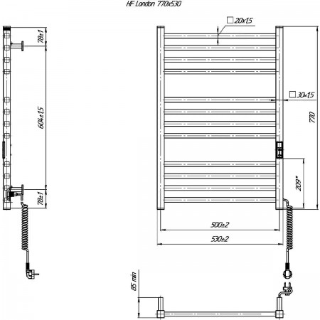 6.1.0102.06.WM Рушникосушка ел. HF London 770х530 білий мат, в комплекті з прих.підкл (1 сорт)