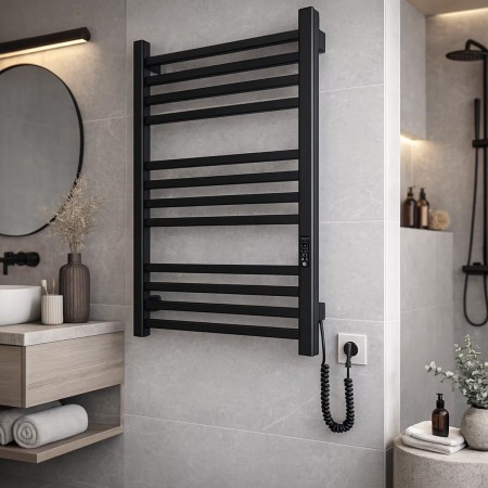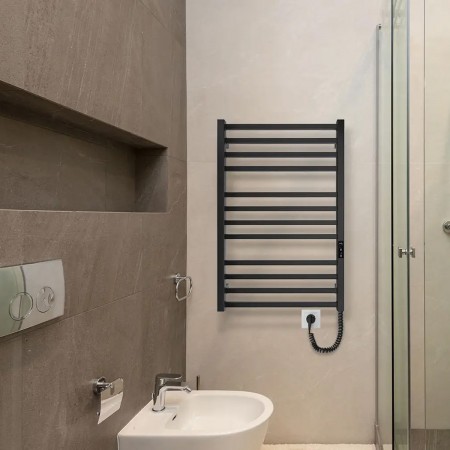 6.1.0100.06.BM Рушникосушка ел. HF London 570х430 чорний мат, в комплекті з прих.підкл (1 сорт)