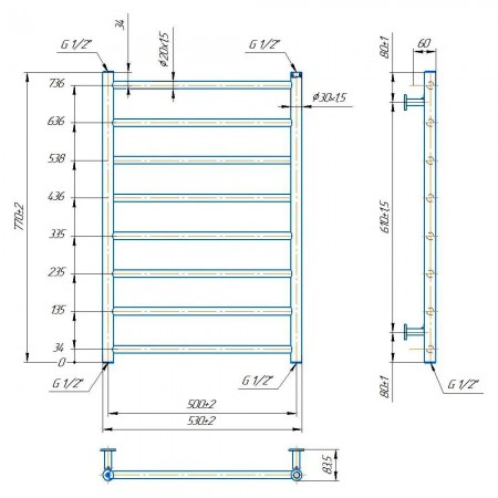 1.8.044565.P Рушникосушка INOX Флет 770х530/500, полірована нержавійка (1 сорт)
