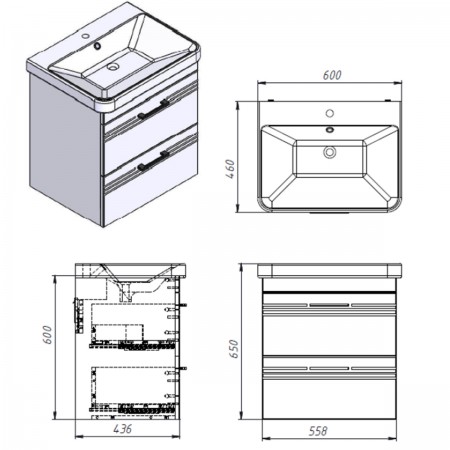 454060W Urbanis Тумба 60 см з раковиною та чорними ручками, біла (1 сорт)