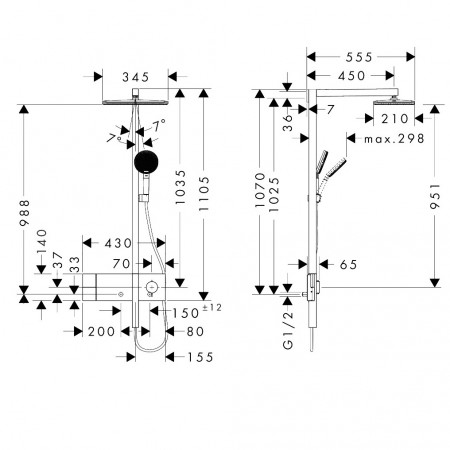24620000 HG Raindance Alive Q Душова система 210/340 1jet з термостатичним змішувачем та внутрішньою