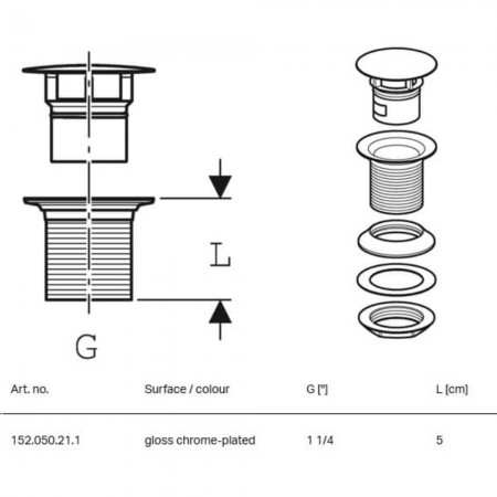 152.050.21.1 Донний клапан до раковини (1 сорт)