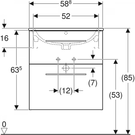 500.995.00.1 Вбудовуваний умивальник Geberit Selnova Square 80см, отвір для змішувача в центрі, пере