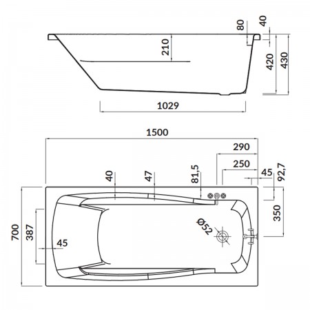 LANA Ванна 150x70 + ніжки PW01 (1 сорт)