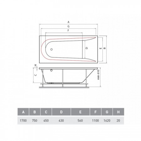Ванна Boomerang 1700x750 посилений борт, з ніжками (1 сорт)