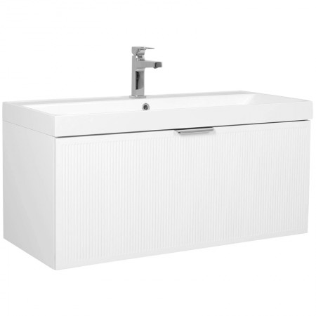 30969 Тумба Fabio (білий мат) з умивальником Fabio 100 см (консольна) ручка хром (1 сорт)