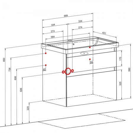 7646 ЕЛІТ Тумба підвісна з раковиною-70 Elite (1 сорт)
