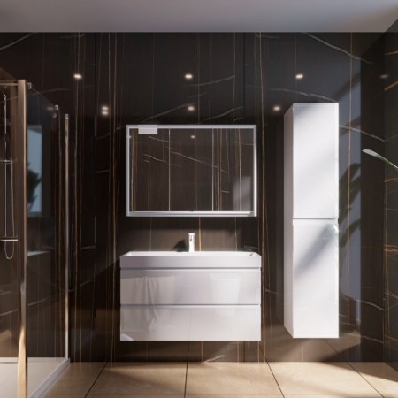 753100W FRAME Біла глянцева тумба 100см з раковиною та сифоном (1 сорт)