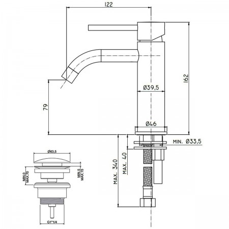 LIG075NO LIGHT Змішувач для раковини з донним клапаном, чорний матовий (1 сорт)