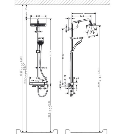 27630000 Croma E Showerpipe 280 1jet Душова система д/душа (1 сорт)