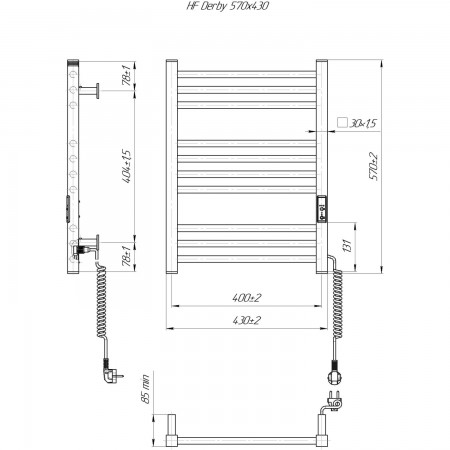 6.1.0400.06.BM Рушникосушка ел. HF Derby 570х430 чорний мат, в комплекті з прих.підкл (1 сорт)