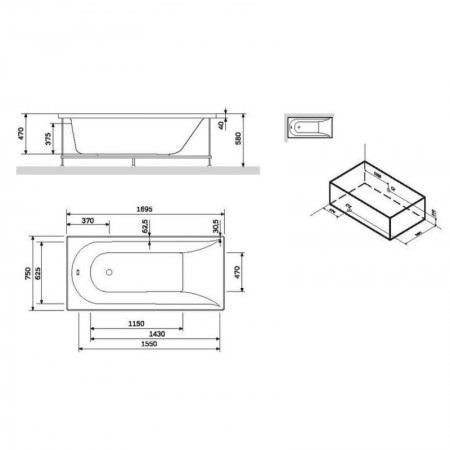 W72A-170-070W-A2 Ванна акрилова spirit 170x70, без зливу/переливу,без ніжок, біла (1 сорт)