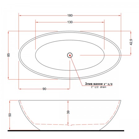 V047FU CAMELIA Ванна з епоксидної смоли 180 x 85 x 50h, прозора (1 сорт)