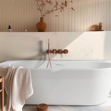 160.086.043.1-3.0.3.X.X Ванна Scorpius Lite пристінна, з переливом та сифоном, біла, штучний камінь,
