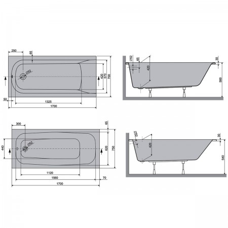 HAR17070 Harmony Ванна 170x70 см + ніжки, біла (1 сорт)