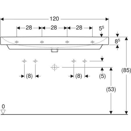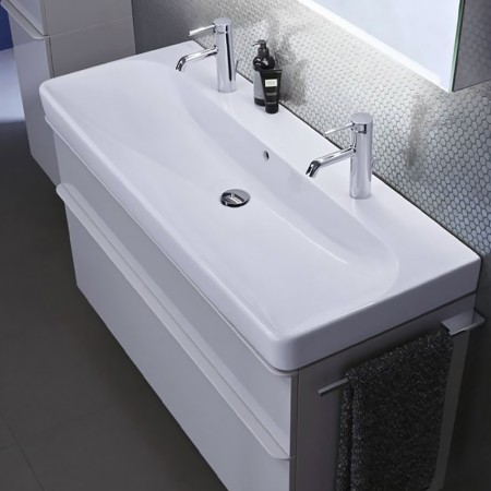 500.223.01.1 Geberit Smyle Умивальник меблевий 120см, 2 чаші, з 2 отворами під зміш., колір білий гл