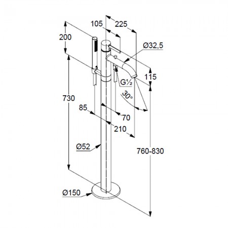 385900576 KLUDI BOZZ Змішувач ванни з ручним душем, окремостоячий, хром (1 сорт)