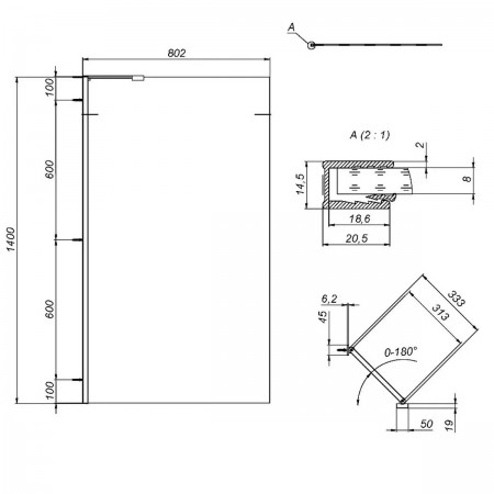 WU90BS-080-140CM Gem шторка на борт ванни 80х140, фіксована, хром, стекло матове, з пристін. Скло